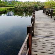蜿蜒在整个水月湿地之上的月相栈道,风景非常漂亮。湿地公园中清澈见底的水域和两岸芳草萋萋的倒影晃花了游人的眼。徜徉在这烟雨朦胧如江南水乡一般的风景胜地,前后左右,移步换景,空气清冽,让人身心分外愉悦舒畅!游人们对眼前如梦似幻的水域园林风光赞叹不已!