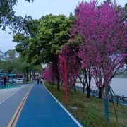 一踏入公园北大门,就被眼前宽敞的林荫道,绿草如茵的草坪,姹紫嫣红的芬芳桃李花儿🌸所吸引,没有想到眉山湿地公园是一个景致这么秀丽迷人的地方!