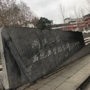 广场上有专门纪念西迁和求是精神的石碑,广场后面是湄潭文庙,是当年的浙大办公室、图书馆旧址,现在是浙大西迁历史文物展览馆,广场右侧有个天主堂,是当年浙大教授住处,红军长征时是第九军团司令部旧址。