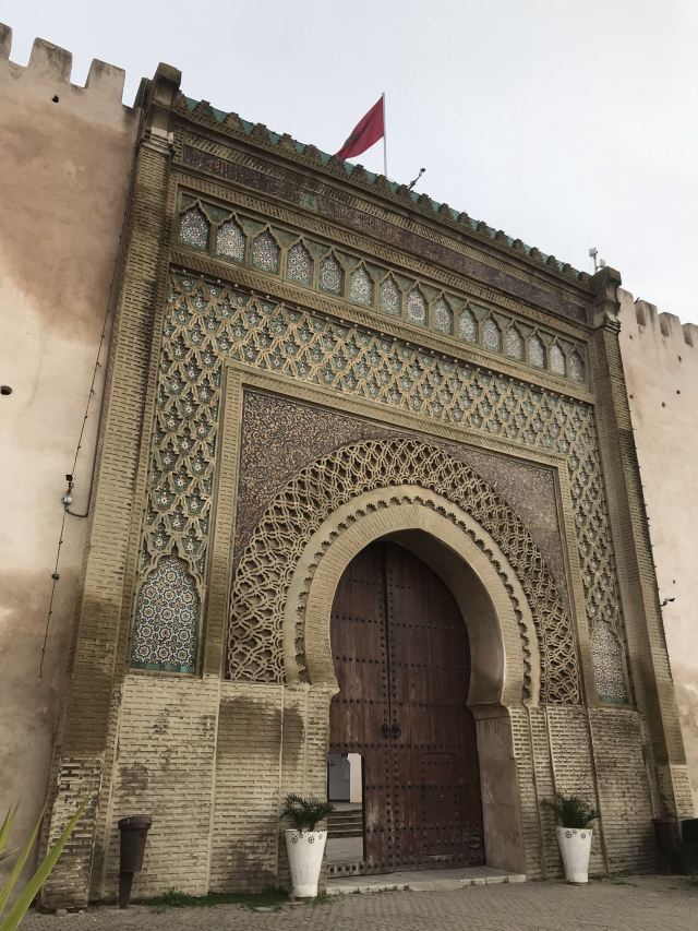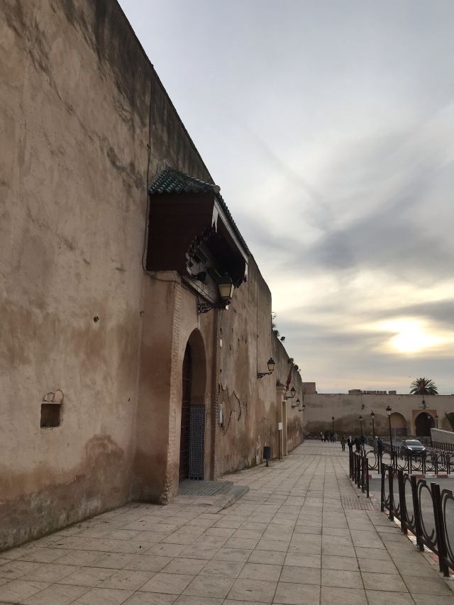 作为世界文化遗产,梅克内斯比较出名的就是那条连绵25公里的古城墙了。它是摩洛哥较长较完整、布局较复杂和形式很丰富的古城墙。而城墙上非常壮观的,就是曼索尔城门。它坐落在城市广场的对面,据说当年穆莱·伊斯梅尔建造时,是作为给自己的丰功伟绩树碑立传的纪念碑来修建的。高大、雄伟,圆形的拱门两侧还立着两座类似阁楼一样的护堡,造型十分别致。