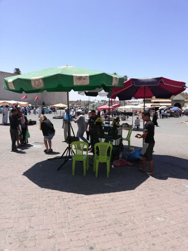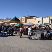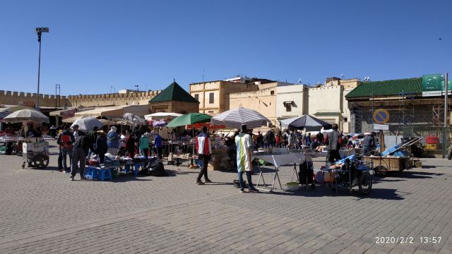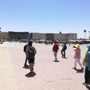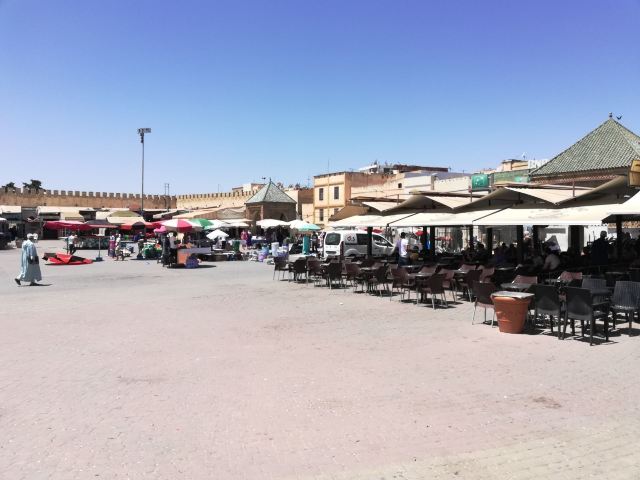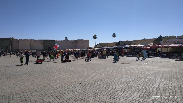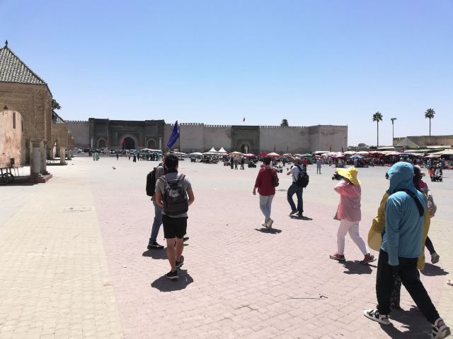 4分 满意被称为小德吉玛广场,从规模到内容比马拉喀什的德吉玛广场小很多,也是耍蛇耍猴,卖东西,对面是曼苏尔门。一边连着麦地那。白天这里人不多,太晒了。