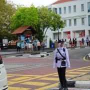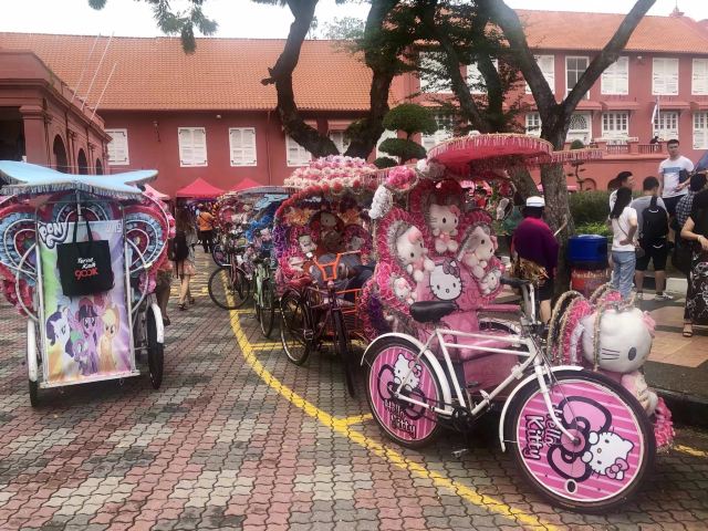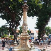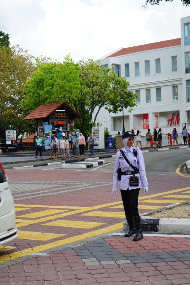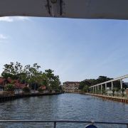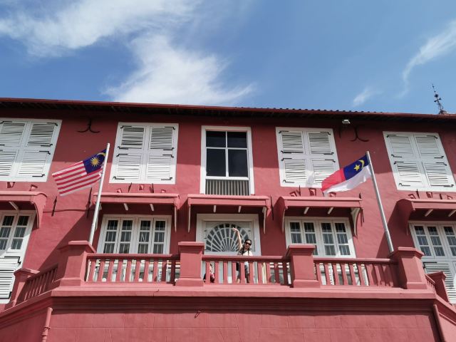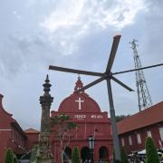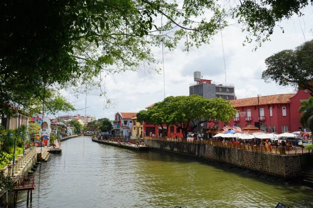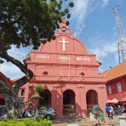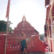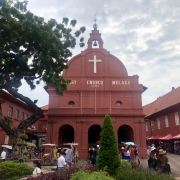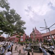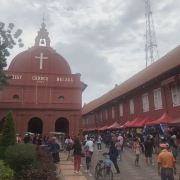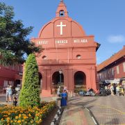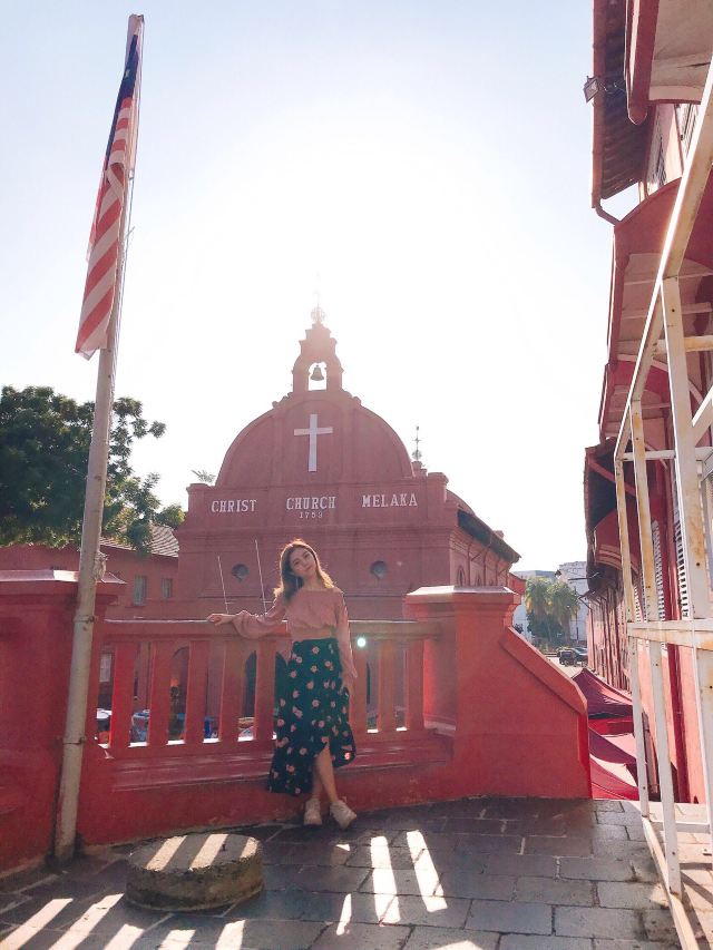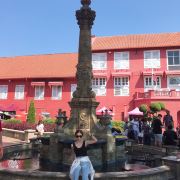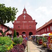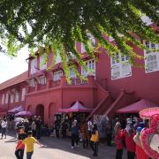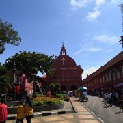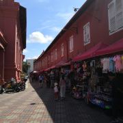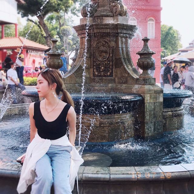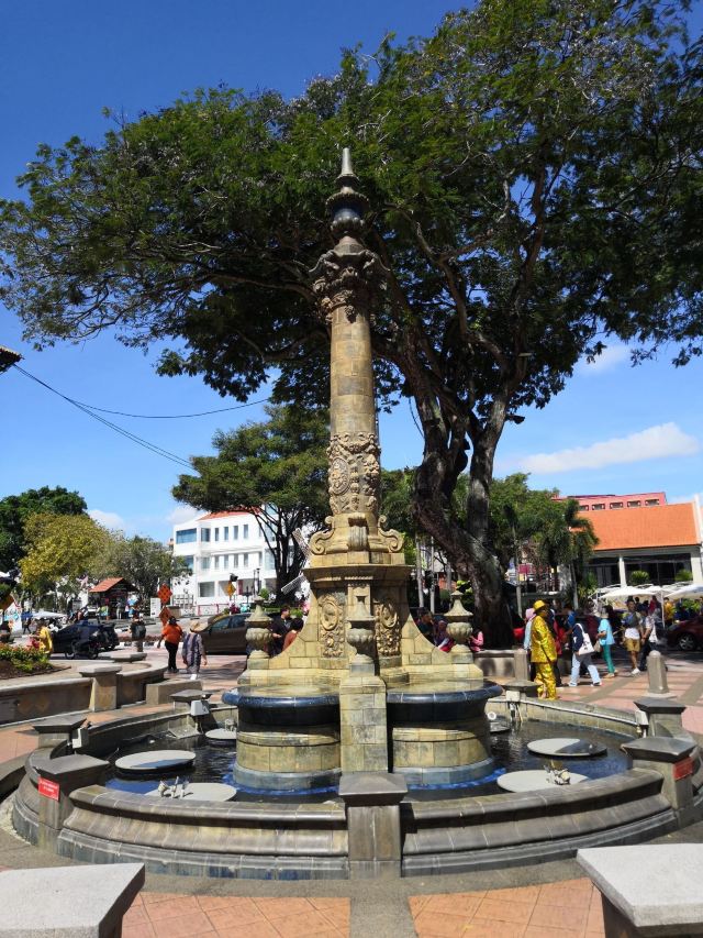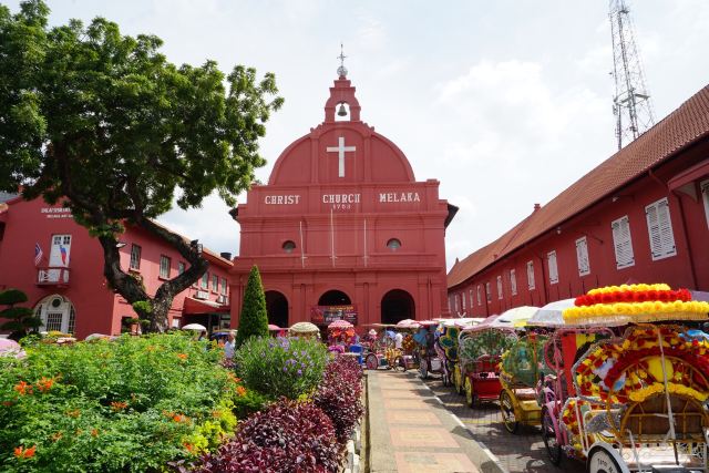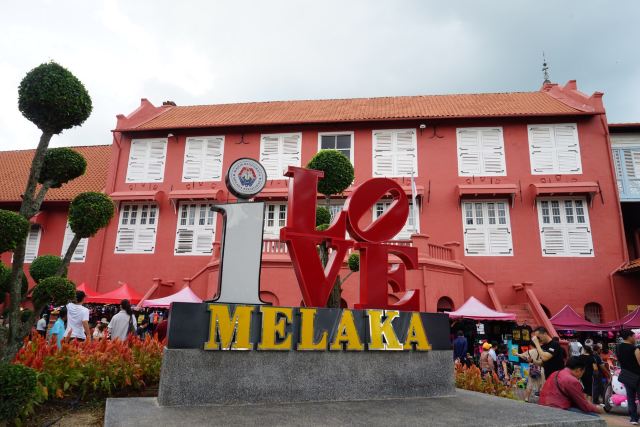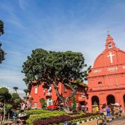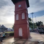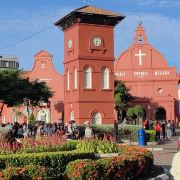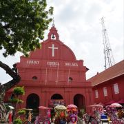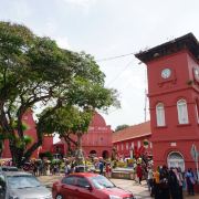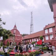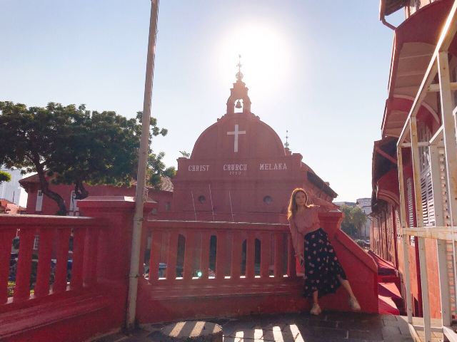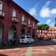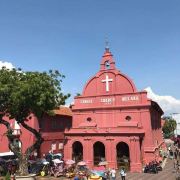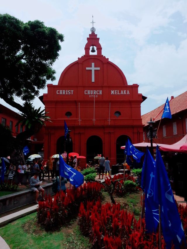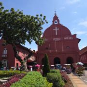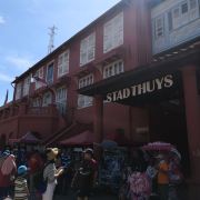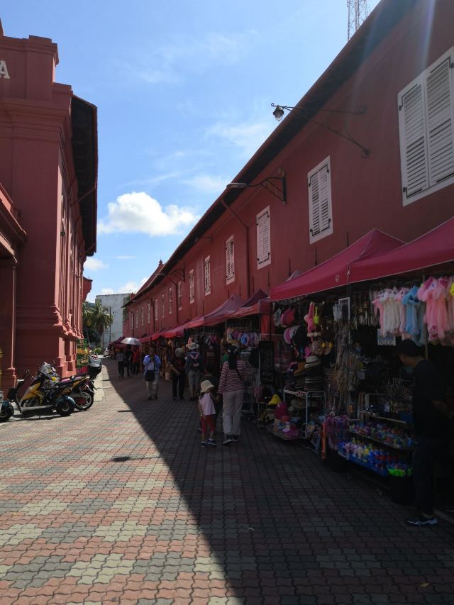 跨越马六甲河桥,到了河的东岸,映入眼帘的是一个整洁的广场,广场上有一座红色的钟塔和维多利亚时代所建的喷泉,和其他所有喷泉一样,总会有游客向里面投硬币来许愿。广场周围都是荷兰式的红色建筑物。面对广场的就是古老的荷兰红屋了,它是荷兰人在东方所保留的比较古老的建筑物。荷兰红屋有厚厚的红砖墙,笨重的硬木门,门前是宽阔的石级。