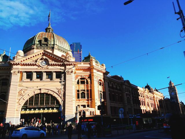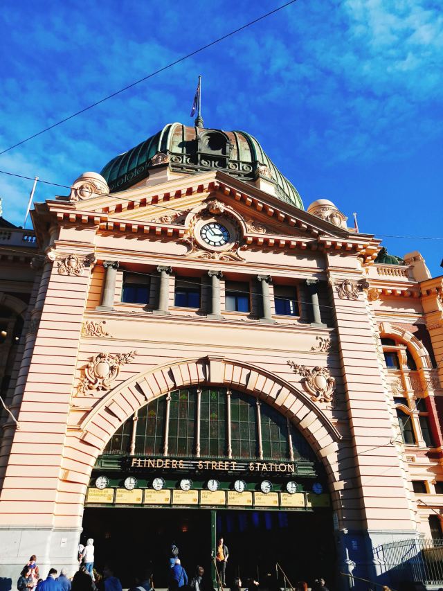 5分 超棒弗林德斯大街车站是墨尔本最大和最繁忙的车站,这座维多利亚时期的建筑墨尔本的第一个火车站,是当地火车线路的总站,也是墨尔本人约会见面的指标地点,火车站大钟则是墨尔本的标志性建筑。在这里停驻一刻看世界各地的游客和当地人的人来人往,会体会到时间留下的痕迹。从一百多年前至今,福林德街火车站一直是墨尔本市火车交通的枢纽,而现在它的意义不仅是火车站,更是人们心中一个墨尔本的象征,串起了墨尔本的过去、现在和将来。附近美术馆、咖啡馆。电影院鳞次栉比。对面是圣保罗大教堂,同福林德街火车站一起形成了墨尔本最有特色的景观,时间仿佛倒流至上个世纪,不论从哪个角度看这个车站,都能感受到它的古老魅力和精致又充满欧式风情的色彩排列,而沿着车站发展开来的文化与文明,让墨尔本这座文化之都愈发的焕发出古老与现代交织的魅力。