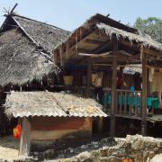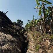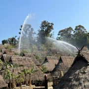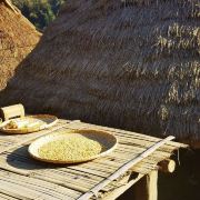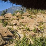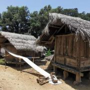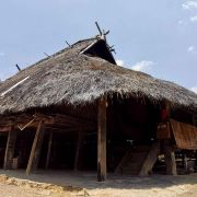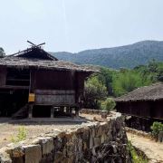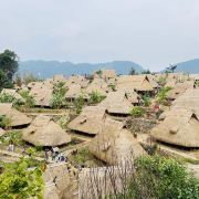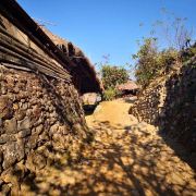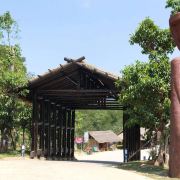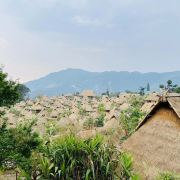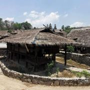 - 茅草屋:村落建筑风格统一,多为全木结构茅草房,分为干栏式和落地式,屋顶由茅草覆盖,外形犹如孔明帽。