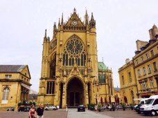 梅斯主教座堂是这座城市较有名的古代建筑之一,这座哥特式建筑始建于13世纪初,外墙通体由黄色砂岩构建,而它较有名的则是华丽的彩色玻璃,可以看到哥特火焰式玻璃、文艺复兴式玻璃等非常经典的工艺作品。