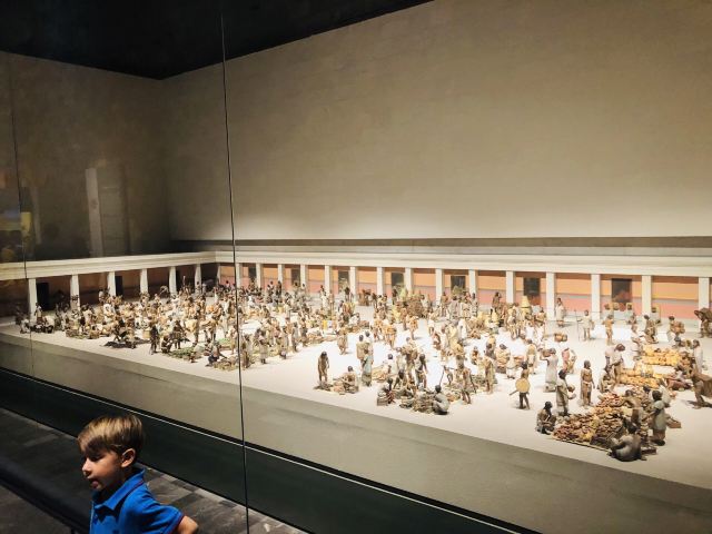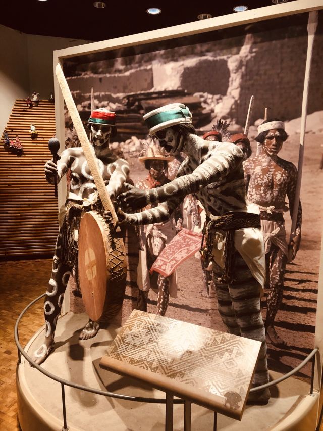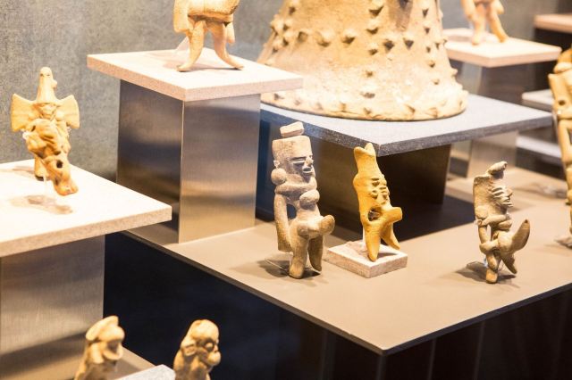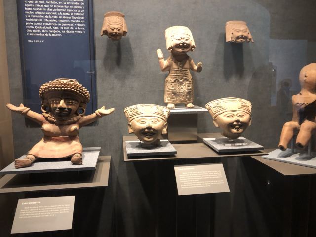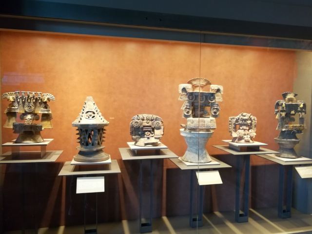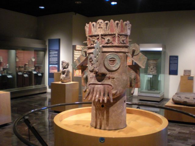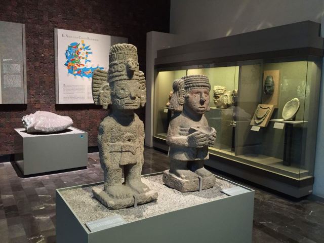 博物馆分两层,底层有12个大厅(sala),集中展出考古出土的27000多件文物,主要介绍前西班牙时期的墨西哥文明,包括体现印第安文明的大量珍品,如彩绘人像锅、彩绘陶锅、美洲虎翁、玉米神像香炉、笑面人像、人面纹香炉、雨神像瓮等。Mexica展厅里重达24吨的太阳石,则成为阿兹特克昔日辉煌的留证。第二层的展厅在位置上基本与一楼对应,用于展示墨西哥当代文化和现代生活。通过服饰、乐器、武器、宗教器皿和生活用具等多种文物详细的说明了墨西哥各民族的文化、艺术、宗教和生活方式等情况。