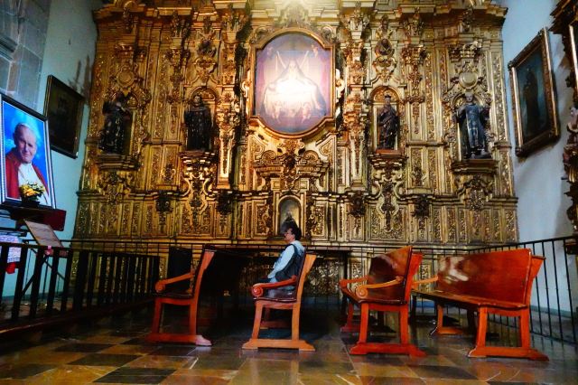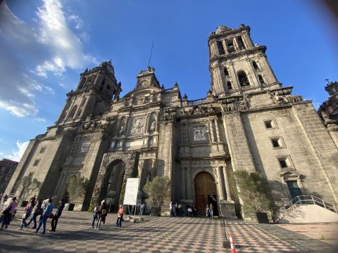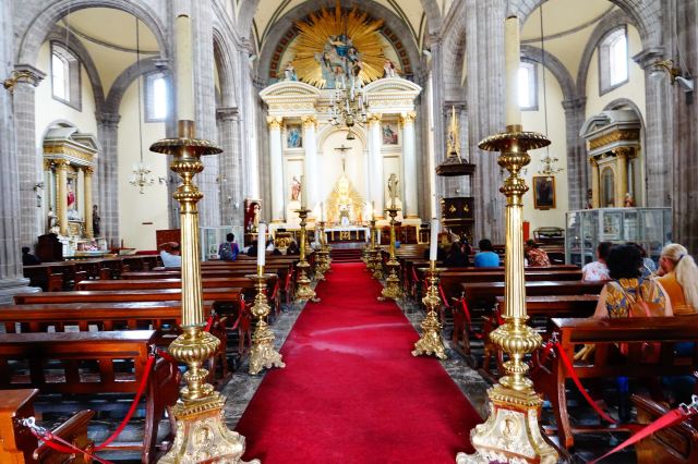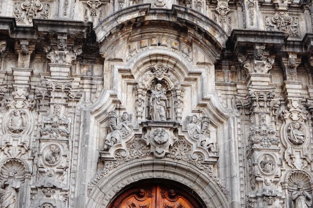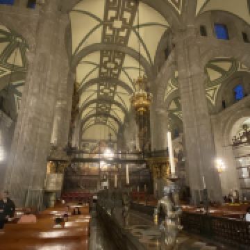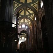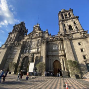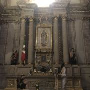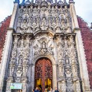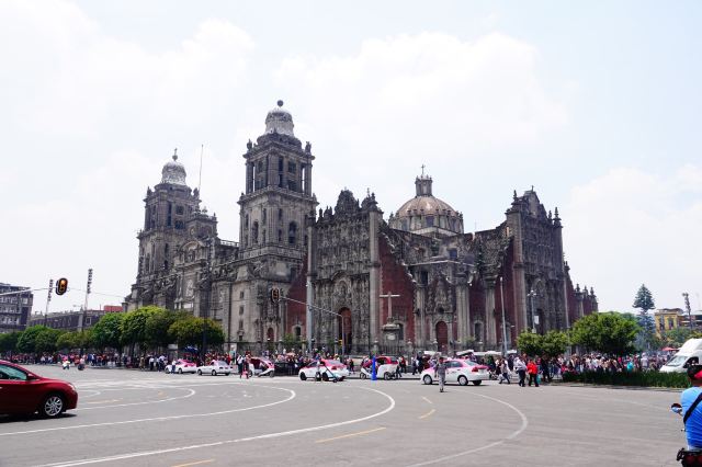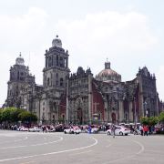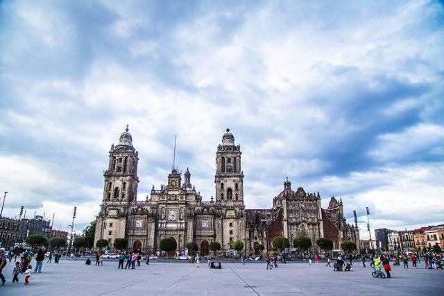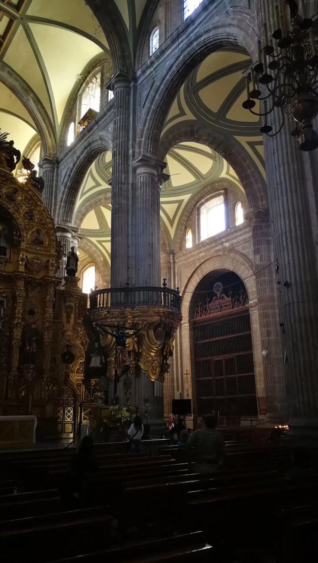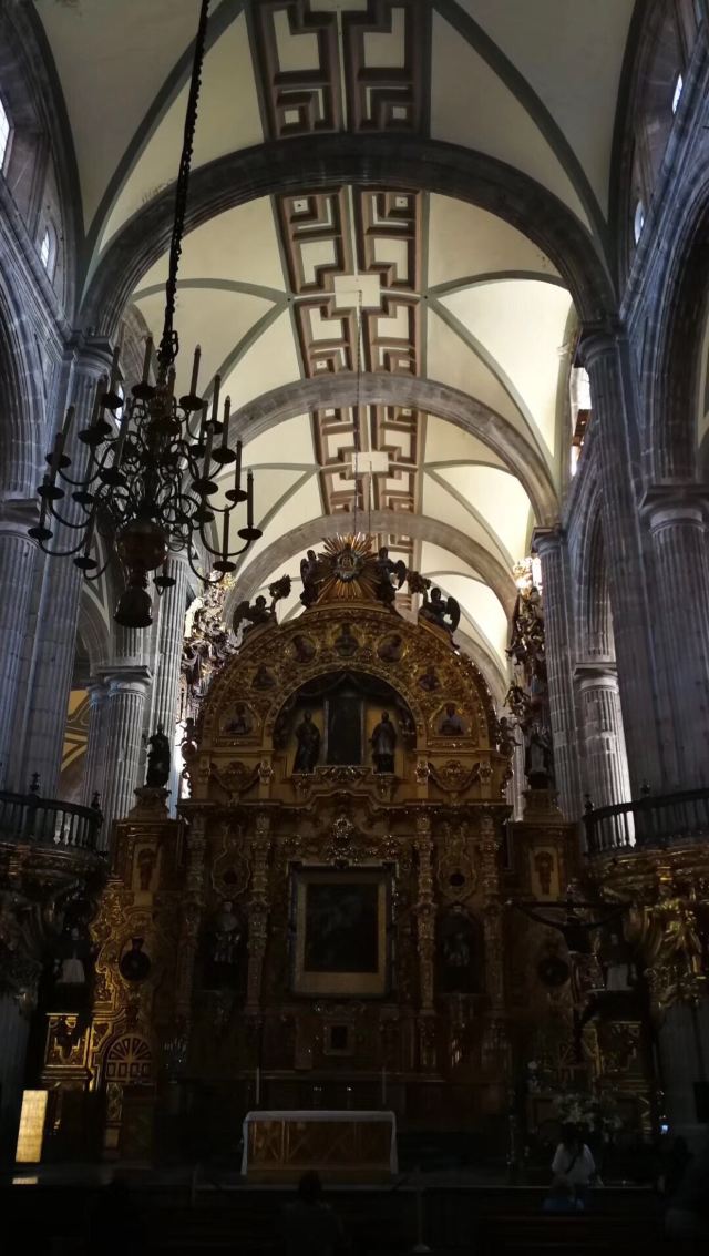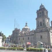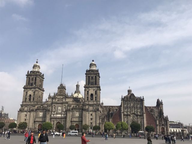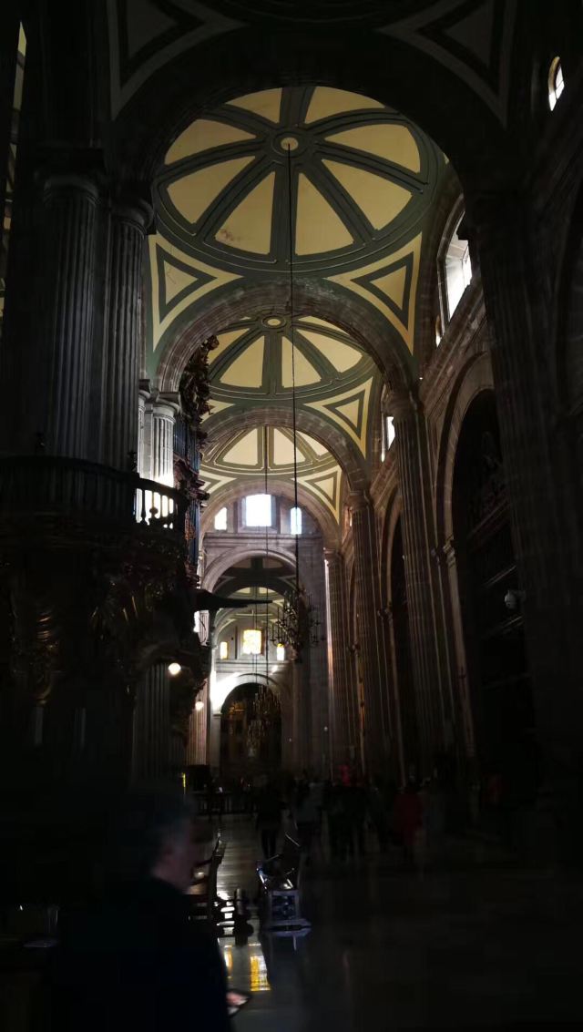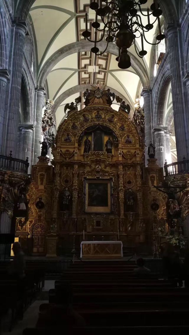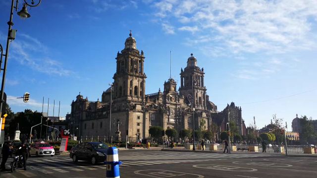 墨西哥城主教座堂位于宪法广场北侧,是拉丁美洲规模较大且历史悠久的天主教堂。教堂由西班牙人在1573年开始修建,至1813年方完全竣工,历时250年完。漫长的修建时间使大教堂包含了古典巴洛克、新古典等多种建筑风格。