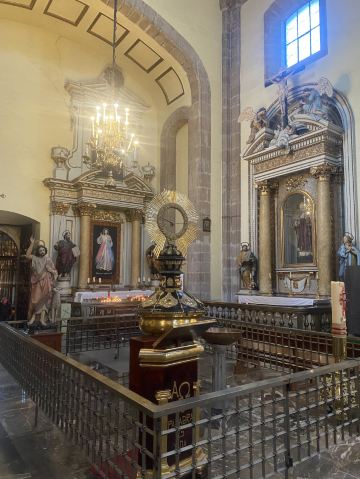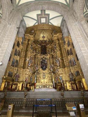 4分 满意今天继续分享教堂内部的装饰,重点展示主祭坛部分,喜欢的明天可以再来看看其他部分。金碧辉煌的墨西哥城主教座堂是墨西哥城的标志性建筑,也是拉美最古老、最大的教堂,从1524年开建, 花了300多年才建成了。教堂规模宏大,光祈祷厅就有14个, 而最有看头的神坛分别称为国王坛和原谅坛。它的修建过程相当漫长,从16世纪始建,直至19世纪才全部完工,持续了二百多年。总之,经过了数代人的努力,精益求精的建设使得建筑本身具有不同时代的特征,从塞维利亚式到巴洛克式风格完美融合。教堂内外浮雕的华丽程度丝毫不逊色于米兰大教堂等欧洲的著名天主教堂,同样令人叹为观止。