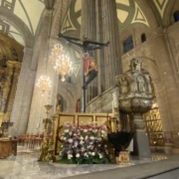 为了彰显天主教的威望与更好地统治墨西哥人,在1573年下令拆除原来的主座教堂,重新建造一座更宏伟的新教堂,直到1813年才正式完工,座就是今天的墨西哥城主座教堂了。墨西哥城主教座堂长110米,宽54米,由2个钟塔(内有25口钟)、1个中央穹顶、3个大门、5个中殿、51个拱顶和40个塔器组成。主座堂内有16座礼拜堂,其中的14座对公众开放,这些礼拜堂各自有华丽的祭坛、绘画和雕塑。主座堂还拥有2台18世纪的巨大管风琴与及两个华丽盛大的祭坛、一个圣器收藏室以及一个唱诗班。这一串的数字,用实力彰显墨西哥城主教座堂的崇高地位。