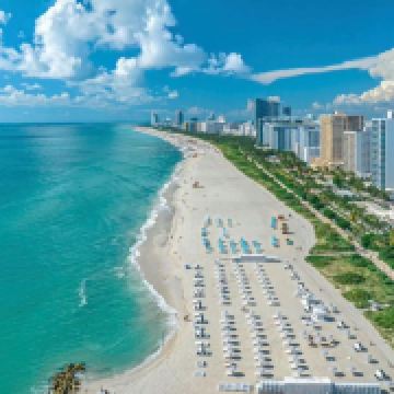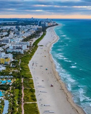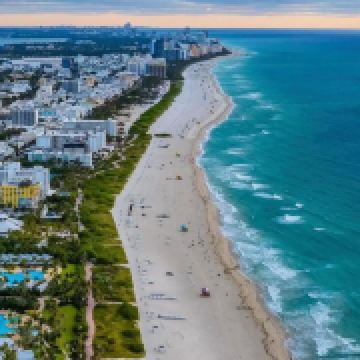 迈阿密滩是比斯坎湾和大西洋之间狭长的小岛,与迈阿密市隔着一道海湾。延绵数公里洁白柔软的海滩让这里成为迈阿密的度假胜地,酒店、商场、餐厅、娱乐等设施齐全。