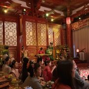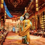4分 满意表演40分钟左右,携程购买268一位,食物基本上可以忽略,互动有点儿少,剧情和节目也很简单,看了没什么记忆点,更多人买票进来,还是为了在应天门城楼上拍照,这个四楼是只面向演出票的客人开放。
