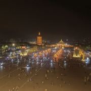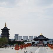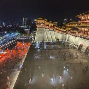1、《唐宫乐宴》:位于4A景区隋唐洛阳城遗址中的应天门景区内。隋唐洛阳城遗址是洛阳市区内的人文遗迹,分外城、皇城、宫城3重城墙,总面积47平方公里,景区主要坐落在皇城和宫城遗址上,由明堂天堂、应天门、九洲池3个相邻的子景区组成,单独售票。应天门是武周时期(690-750年)的皇宫正南门,始建于隋大业元年(605年),初名则天门,因有5座形似凤凰的崇楼又称五凤楼,是隋代、唐代、五代十国时期举办重大国事庆典的地方(相当于明清时期的紫禁城午门),是当时规格最高的城门,被誉为“隋唐第一门”,名称随日本遣唐使传入日本,是日本京都应天门的由来。应天门于武周神龙元年(705年)武则天登基后为避尊号改名应天门,于南宋建炎二年(1128年)被金兵焚毁,眼下建筑是2018年复建,由门楼、朵楼、东西阙楼组成,呈“凹”形,东西长达137米,气势恢宏、夜景绝美,彰显盛唐气魄。景区分北广场、南广场、遗址区、观景平台4部分,是观景摄影、人文学习、古装写真、演艺欣赏、夜景拍摄的好去处,历史上留有诸多隋唐帝王将相、白居易等名人足迹,是洛阳旅游必打卡的景点。