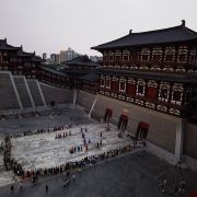 2、观景平台位于二层,是新城门所在平台,新城门是建在遗址区上方的景观性“地上城门”,无通行功能,东西南北4面均有观景台,东、西阙楼高36米,是整个阙楼的制高点,是登高远眺的绝佳位置,白天禁止登楼,只有买《唐宫乐宴》票的游客可在观看演出时登楼,只想登高观景的话,到隔壁的天堂明堂景区的天堂塔九层更划算。