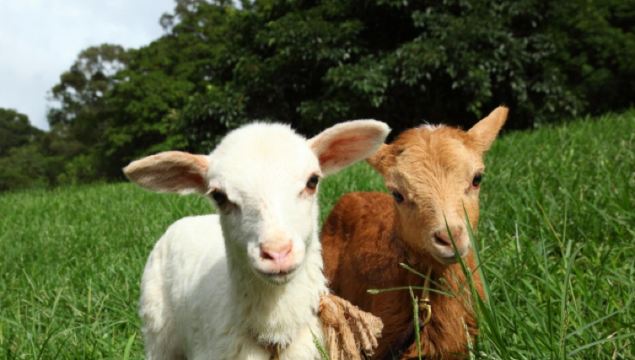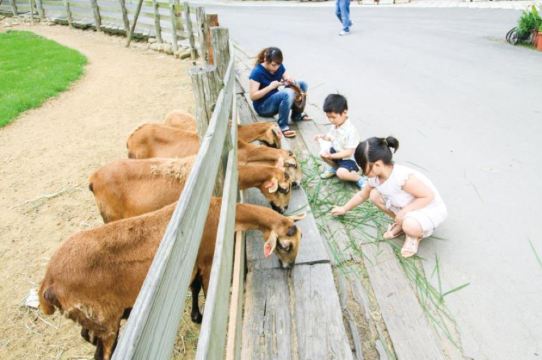 拿起新鲜的牧草,就可以亲手喂羊咩咩吃饭啰!