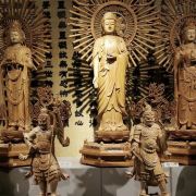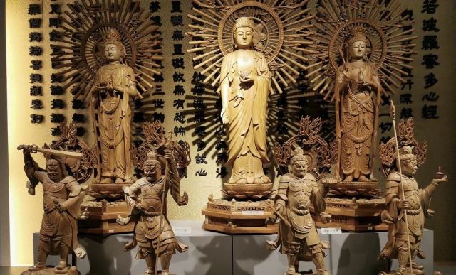 博物馆内搜藏及展示的木雕艺术品,从本土到国外的都有,包括佛像、神明、人物、动物等各种类型。其中,最引人注目的就是大雄宝殿中的千手观音,由上百块的木头拼接而成,非常精致。
