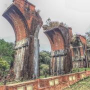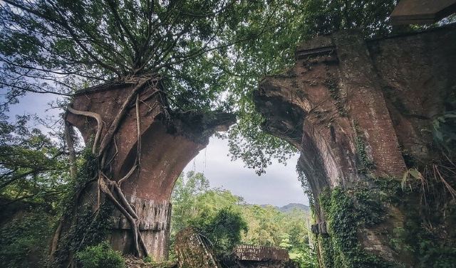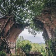4分 满意因大地震而断碎的桥梁,桥身用红砖块搭建而成的拱形建筑,残垣断壁荒草凄凄却另有一种美感