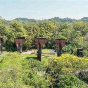 5分 超棒龙腾断桥,原名鱼藤坪桥,为纵贯线铁路全线开通前一年所兴建完成的砖造桥墩、钢钣梁及桁架梁混合型式之桥梁。1999年921大地震后,于2000年将鱼藤坪断桥指定为震灾纪念物。