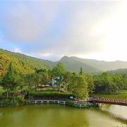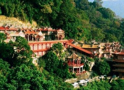 狮头山位于新竹县与苗栗县之间,海拔高度约为520米,因远眺山形极似狮头而得名。狮头山的观光资源丰富,这里有独特的山形山壁,以及峨眉湖等景点,山中还坐落着十八座佛教寺庙,是百年佛教名山。