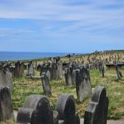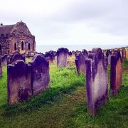 惠特比修道院位于英格兰北约克郡的一座海边小城——惠特比镇的东崖(East Cliff)之上,屹立于天际线之上的剪影宛如庞大的哥特式墓碑。这座古老又神圣的建筑建于11世纪-14世纪之间,处于俯瞰着整座小镇的中心地段,要到达这里,需要踩着闻名的199级台阶,沿着悬崖的一侧而上。在攀登台阶直上惠特比修道院的同时,必定会经过同样壮观的圣玛丽教堂(St Mary's Church)和其令人胆战心惊的墓地,后者是哥特情侣热恋时较喜爱的去处。