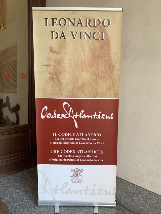 安布罗修美术馆内有一条艺术长廊,展出多为伦巴第派和威尼斯派大师的画作,如拉斐尔《雅典学院》的草图,达芬奇的《音乐家》,卡拉瓦乔的《水果篮》,波提切利的《帘下的圣母》等。此外从2009年起,被后人誉为非常具研究价值的12卷达芬奇《大西洋手稿》也在此首度向世人展示,记录了从1478年到1518年间达芬奇在飞行、武器、乐器、数学、植物学等领域的各种成就。