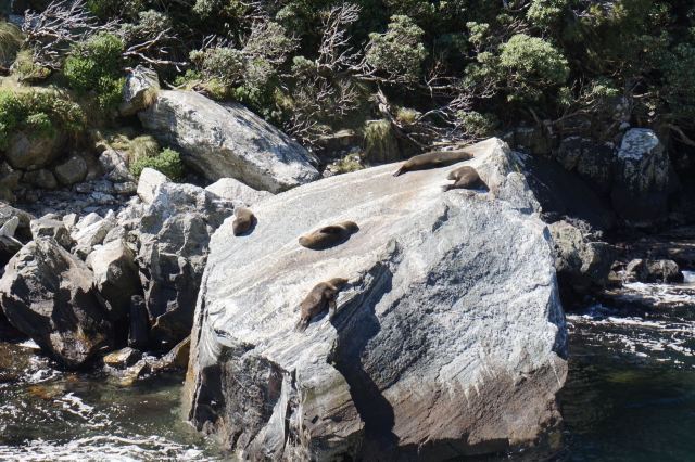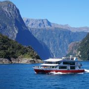 游览米尔福德峡湾,乘坐观光游船,是最佳的选择。从游船码头出发,到塔斯曼海入海口折返,全程32公里,用时110分钟左右。沿途,在甲板上尽情观赏湾光山色,在海豹岩边同臃懒地晒着太阳的海豹打个招呼,在瀑布下被“能让人年轻10岁”的瀑布水淋湿头发~自在痛快,好不惬意。