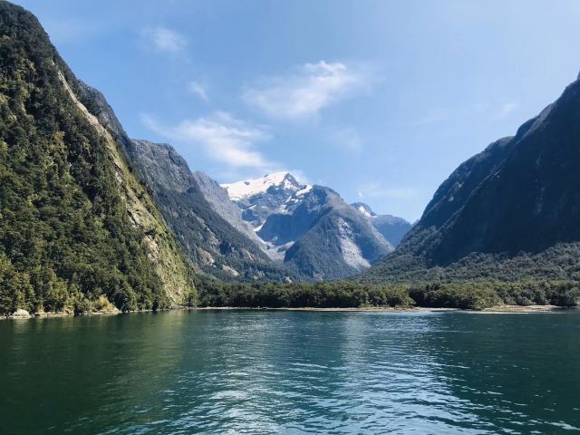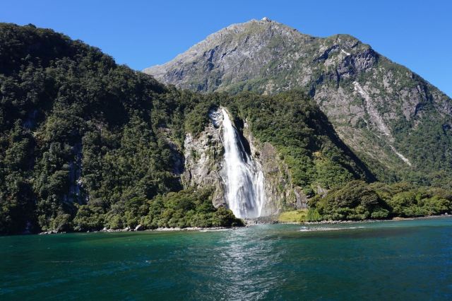 狭长形的米尔福德峡湾,从海岸伸入内陆22公里,最宽处2公里,最窄处400米。峡湾内,既有峭壁嶙峋、群峰起伏、雨林茂密,又有瀑布条条、激浪拍岸、海天一色,把大自然鬼斧神工的峡湾景观体现的淋漓尽致,令人目不暇接、美不胜收。