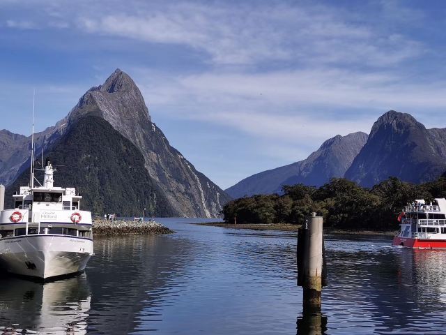 小贴士: 米尔福德峡湾游船码头对面的米特峰,是峡湾的标志性景观,是新西兰旅游的名片,必须打卡留影。