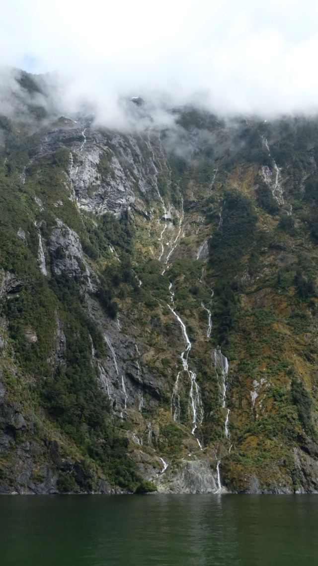 沿途,既有峭壁嶙峋、群峰起伏、雨林茂密,又有瀑布条条、激浪拍岸、海天一色,把大自然鬼斧神工的峡湾景观体现的淋漓尽致,令人目不暇接、美不胜收。