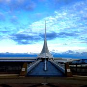 密尔沃基美术博物馆坐落在密歇根湖畔,这栋建筑外形呈帆船造型,远处看来真如一艘扬着白帆的轮船。到了冬天,湖面一片白茫茫,博物馆似乎融入了一片冬色中。