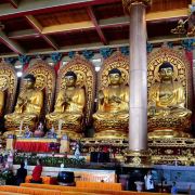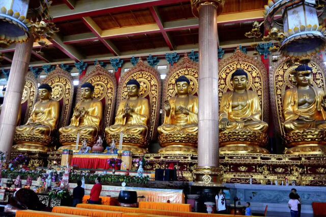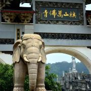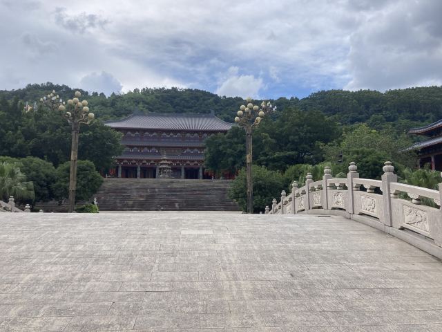 5分 超棒自古以来,福州名寺就有“西旗东鼓,旗鼓相当”之说。这里所说的“西旗”,指的就是旗山万佛寺。旗山万佛寺,原名石松寺,始建于宋大中祥符三年(1010),初名灵凤寺。绍兴十年(1140)寺僧天石于寺旁种植龙爪松长成,易名为石松寺。福州旗山万佛寺大雄宝殿是亚洲最大的中西合璧的宫殿式建筑。它是现代建筑的设计者在潜心研究中国古代皇宫和亚洲寺庙建筑风格的基础上,根据旗山地形设计而成的建筑精品。旗山万佛寺是目前中国占地规模最大的佛教寺院。旗山万佛寺除占地面积大之外,还有一大特色就是,寺内所建的系列建筑均是仿古的,雕梁画栋,古朴典雅,如天王殿、钟鼓楼、大雄宝殿、学戒堂、念佛堂、般若堂。其中,兴复于明万历年间的大雄宝殿,面阔五间,进深七柱,层高30米,正面青石龙柱12根,规模堪称同类建筑全国之最。殿中斗拱、柱头等采用的均是宋代的榫卯连接构筑方法,这在殿宇重建中较为少见。