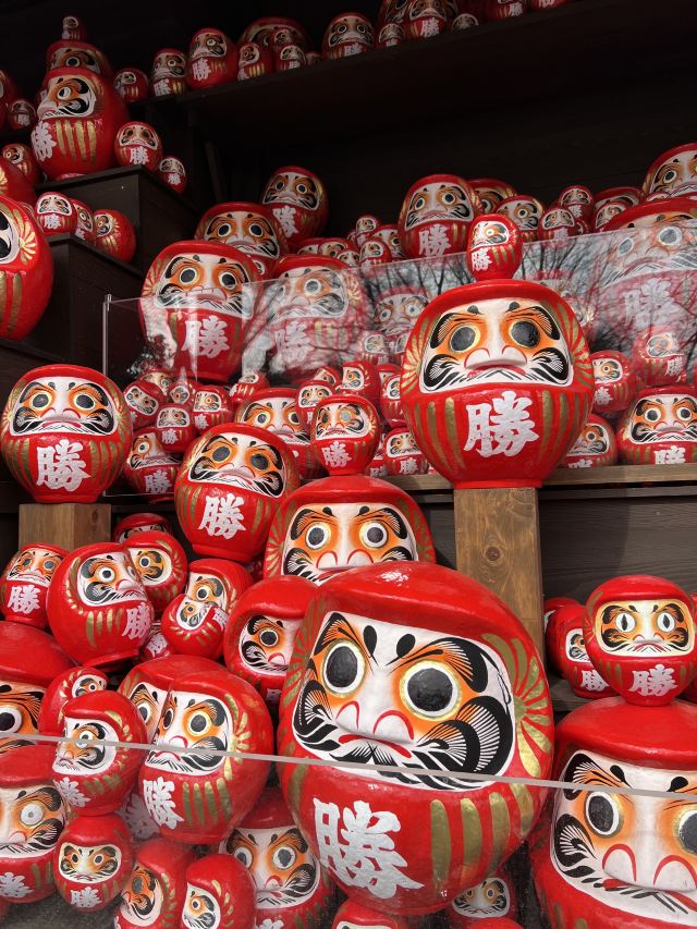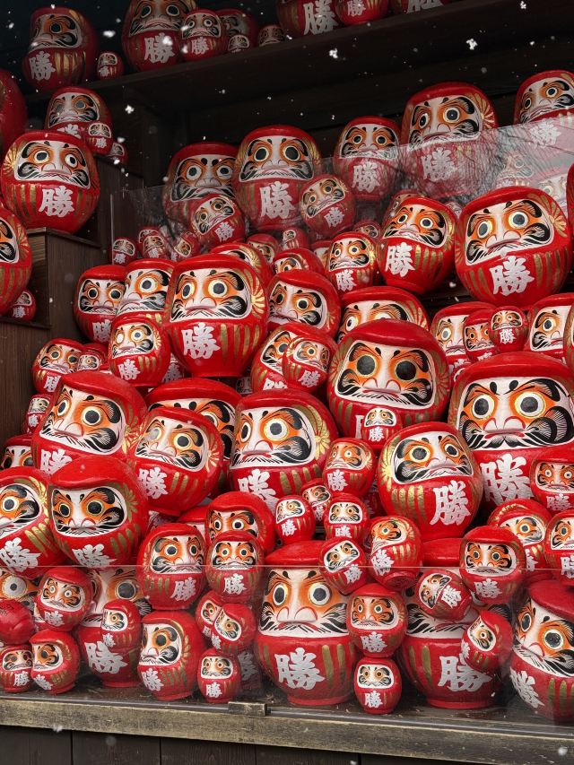 这里最著名的,是遍布各处的「胜运达摩」。无论是殿堂檐下、石阶旁或树梢间,无数小巧可爱的达摩像静静守候,宛如精灵国度。相传自古便是祈求胜运的灵场,从竞技比赛到人生挑战,人们来此将愿望寄托在达摩之中。