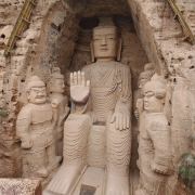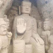 4分 满意这次从甘南驱车近500公里跑来,就是为曾经游览过的四大石窟找爹。一路历经高速,国道,省道,县道,乡道,无名公路,总算在一个偏僻的山中找到了。有一说一,大佛面前的水库景色还是非常不错的,但是石窟就有点失落了,原来1956年为了修建黄洋河水库,国家把石窟群里所有可移动的佛像和壁画全部搬迁走了,现在都在甘博和凉博,大家去了只能看到那尊无法移动的巨佛和左右侍立的六尊佛像。而且最近巨佛的佛脚正在修缮,没有办法下到最底层,就在佛像正前方看看。总的说来,这么远的路加30块门票能看的太少,如果不是对石刻艺术特别感兴趣的朋友,建议就不要专门跑这一趟了,性价比不高。