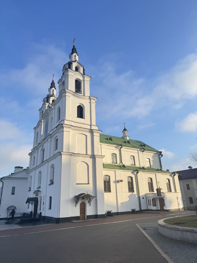 圣灵大教堂位于白俄罗斯首都明斯克市中心的自由广场,是白俄罗斯东正教会的主教座堂,亦是该国重要的宗教地标之一。这座教堂建于1633年至1642年间,起初作为天主教方济各会修道院的一部分,采用了典型的维尔纽斯巴洛克风格,外观以白色立面和双塔结构为特色。教堂内部装饰华丽,拥有四层木制圣像屏,展示了莫斯科学派的圣像艺术。其中受尊崇的是“明斯克圣母”圣像,被认为具有奇迹般的力量。圣灵大教堂不仅是宗教活动的中心,也见证了明斯克的历史变迁。在苏联时期,教堂曾被关闭并用作其他用途,但在二战期间重新开放,成为白俄罗斯东正教会的主教座堂。如今,圣灵大教堂不仅是信徒朝圣的圣地,也是游客了解白俄罗斯宗教和文化遗产的重要场所。