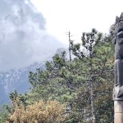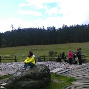 2、云杉坪是位于玉龙雪山半山腰的一个洼地,海拔3050米,洼地铺满冬末未绿的草坪,可远眺玉龙雪山主峰,是拍照点,待春夏草绿时最美;观景台上厕所的科幻屏幕很新奇;租穿少数民族服饰的美女们和图腾柱亦是一道靓丽的风景线;四周是高耸冲天的云杉,线条笔直,丁达尔效应将阳光切割成细条状,拍照也很美;沿途绿苔、树根包裹的“定情石”,以及放养的牛都是不错的拍照点,转一圈回到索道站要40分钟。索道口处有玉龙雪山的地质科普介绍。