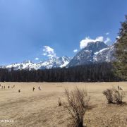 雪山背景:草甸正对玉龙雪山主峰,天气晴朗时可清晰看到雪山全貌,冬季雪景尤为震撼。
