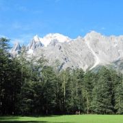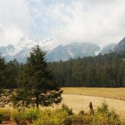 云杉坪位于玉龙雪山景区内,是主峰半山腰上的一片高山草甸,又称“殉情谷”,传说是以前很多青年男女的殉情之地。在这里可以观赏到茂密的云杉树林、高山草甸,还可以观看玉龙雪峰,景色壮观。