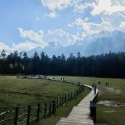 云杉坪是玉龙雪山景区内的一个著名景点,以其原始森林、高山草甸和壮丽的雪山风光闻名。