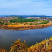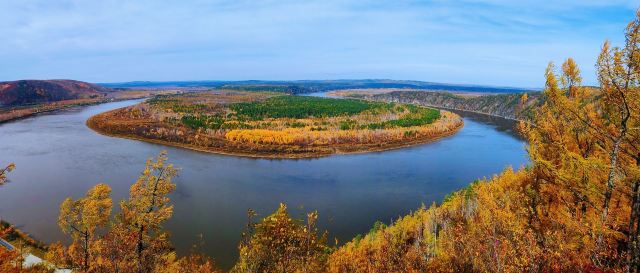 黑龙江流经此处自然形成三个“Ω”环形内陆半岛,“蛇曲”形的黑龙江为界江,自然形成大湾“中国第一湾”。