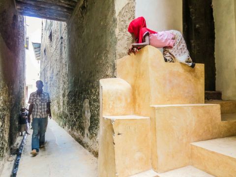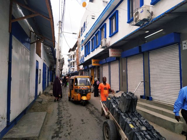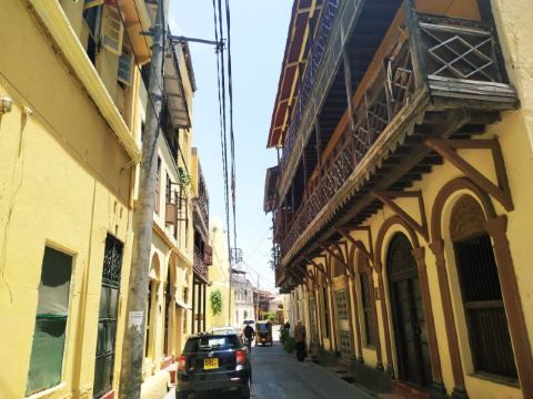 这里可以看到精雕细琢的观光阳台,阳台有漂亮的斯瓦希里木门,通过木门和阳台能够看到狭窄的街道、露天市场和通往海港的蜿蜒小路。