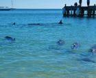 猴子米亚海滩位于西澳的北部,距西澳首府珀斯差不多900多公里。来这里一定要做的事情就是在猴子米亚旅馆旁边的海里看海豚。在猴子米亚,有这样的一些海豚,它们每天从早上七点多一直到中午都会在旅馆附近的海域嬉戏玩耍。
