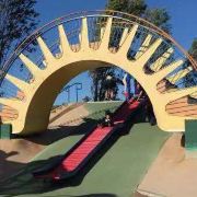 丹尼斯游乐场位于蒙特雷县,公园内有滑梯、秋千和棒球场,还有桥和湖泊,非常适合带孩子来玩。
