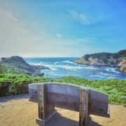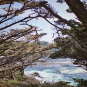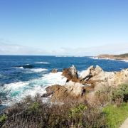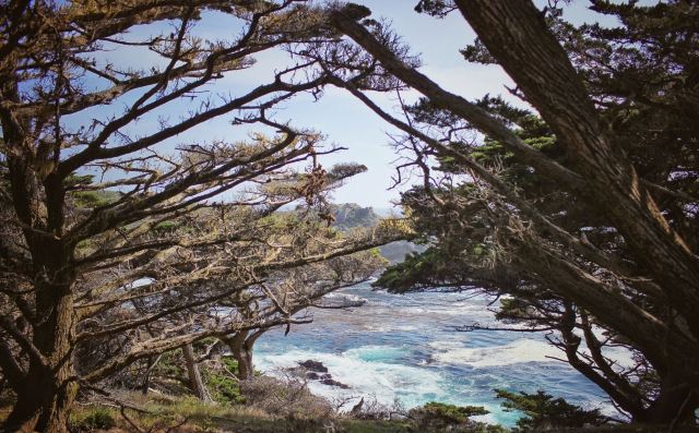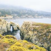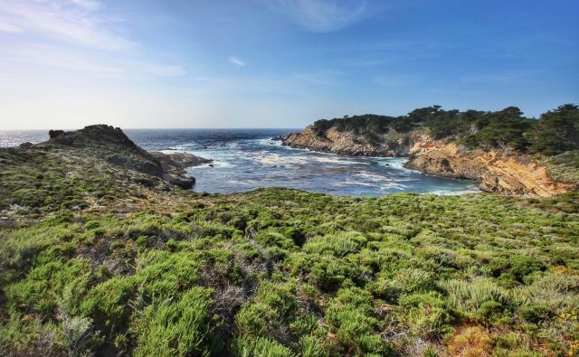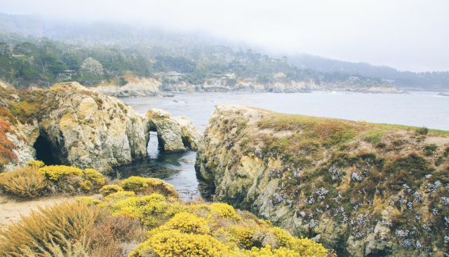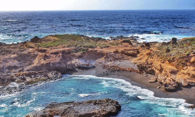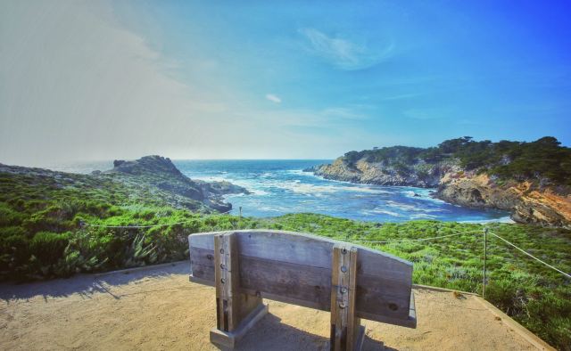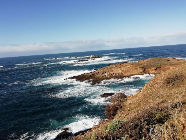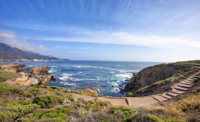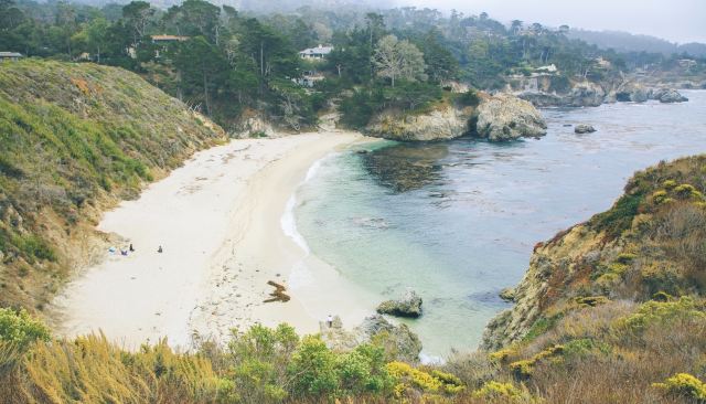 位于加州的海边小镇卡梅尔南边,是加州的陆地往太平洋里伸出的一个角,紧邻1号公路。这是一片开阔的海滩,景色非常美丽,水天相接,有布满鹅卵石的海滩,也有铺满柔软白沙的小块海滩,是漫步、野餐的好地方。