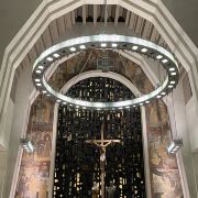 教堂为天主教罗马式教堂设计,绿色的高圆顶,第一眼望去就很是抓眼。教堂内还有巨大的管风琴,拥有5811支管子的管风琴每天都奏出悠扬的乐声,教堂内也会定期举办管风琴音乐会。及哦啊堂内一共有5层,每层都可以搭乘电梯到达。一二层为观景平台,有着广阔的室外平台,教堂内部的每一个礼拜堂都有着不一样的风格,可以慢慢游览参观。