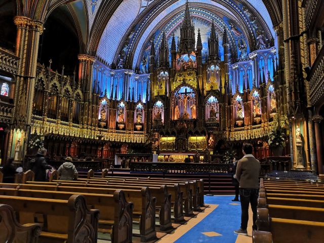 5分 超棒蒙特利尔圣母大教堂是蒙特利尔最美丽的教堂之一。这座教堂和巴黎圣母院非常相似,教堂内部十分美丽。我第一次看到蓝色的教堂,十分震撼。当天外面的气温非常低,进入到教堂里面去看到这样美丽的教堂真的是被震撼到了。整个蒙特利尔都非常法式风情。