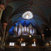 蒙特利尔圣母大教堂是北美最大的教堂,位于蒙特利尔市旧城区中心,在达尔姆广场对面。圣母大教堂外型极像法国巴黎圣母院,所以人们亲切地称呼它为“小巴黎圣母院”。圣母大教堂的正面矗立着两座高耸雄伟的塔楼,外形像极了的哥特式风格的城堡。中间部分建造稍低,正上方是一个圣神的十字架,下方泛着金光的是圣母雕像,教堂门前三扇呈尖拱式的大门庄严而又神秘。教堂内部则富丽堂皇,蓝色的天花板以及新哥德式建筑的代表彩绘玻璃,都无不吸引着游客的目光。其中最引人注目的是镶嵌在蓝色天花板上数以千计,以纯金打造的星星,这些星星使得整个教堂泛发出神秘的色彩,宛如凌晨的星空一般美丽。