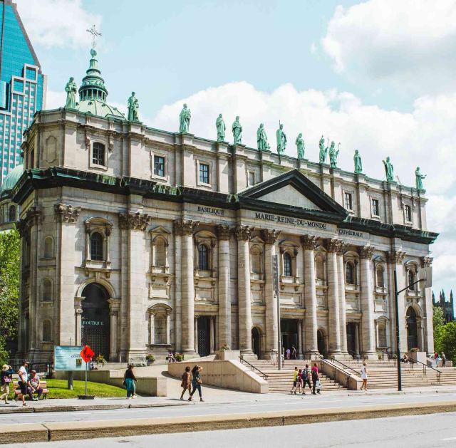 圣母世界之后主教座堂是仿照罗马圣彼得教堂(SAINT-PETER'S)完整样式按1/4比例复制而建的,外观上很有气势,属于天主教堂。圣母世界之后主教座堂的旁边就是杜尔切斯特广场(DorchesterSquare)及加拿大广场(PlaceduCanada)。