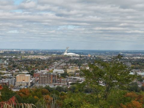 从卡迪亚龙克(Kondiaronk)等几座瞭望台俯望,市区林立的高楼大厦、纵横交错的街道、圣劳伦斯河秀丽的姿容,都可一览无遗。公园上部有马车作交通工具,一九三二年所建筑的观景山庄是观赏市区的较美角度,从水平方向眺望,可以看到帷幕大厦玻璃映现出的朵朵云彩,高耸的办公大厦像是钢筋水泥筑成的峭壁;波光粼粼的圣劳伦斯河上,一座座大型的金属拱桥,两岸车辆川流不息。