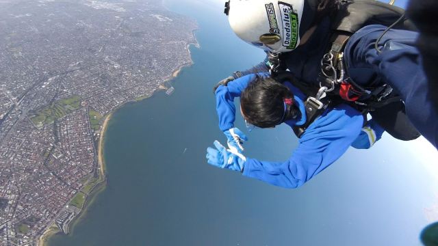 在Skydive墨尔本跳伞将由富有经验的跳伞教练将跟你一起体验高空跳伞的乐趣同时为您提供专业的跳伞指导。14000英尺的上空一跃而下,在60秒内完成心跳加速的快速自由下落,挑战真正的极限,然后像鸟儿一样在广袤的苍穹下自由滑翔5-7分钟,360度全方位俯瞰河谷风光。将郊区的自然风光、广阔的田园农庄和河谷中众多的葡萄园酒庄等壮观景色尽收眼底。