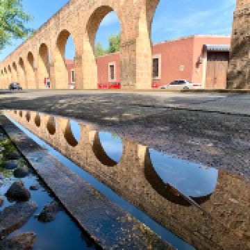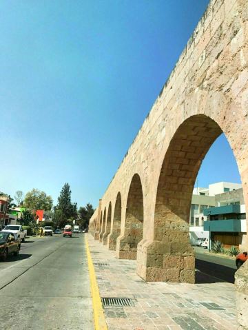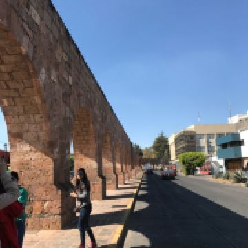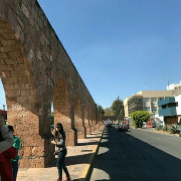 莫雷利亚高架水渠是墨西哥现存的少数几个古代渡槽之一,也称为“渡槽”,也是莫雷利亚的“标志性建筑”之一。水道是18世纪末为了给城市供水而建,为连拱结构,用粉红色石块砌成,非常壮观。水道后因水量不足于19世纪末停用。