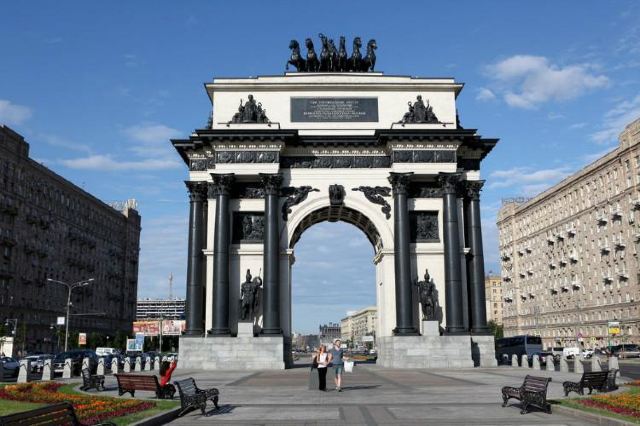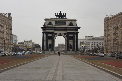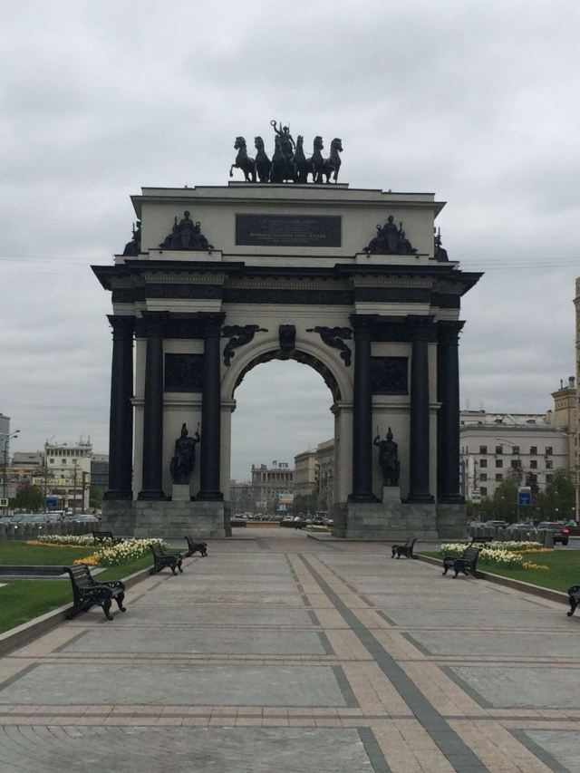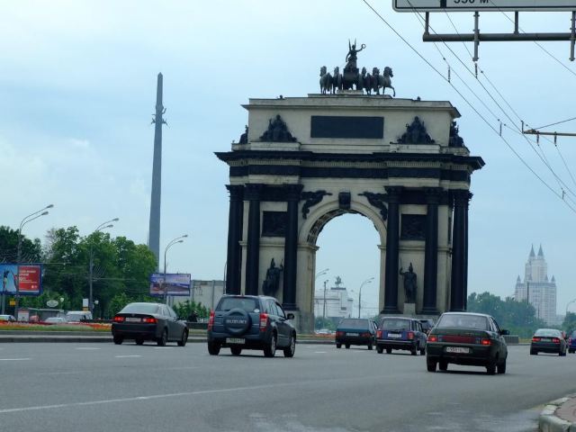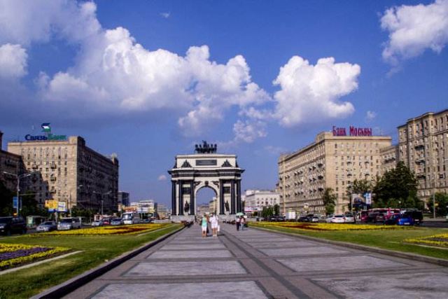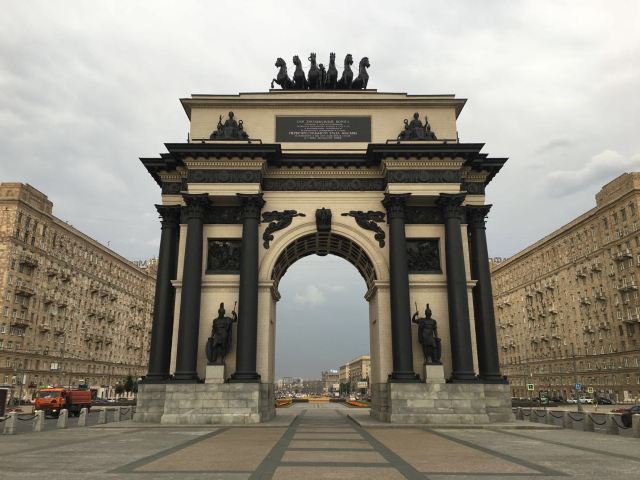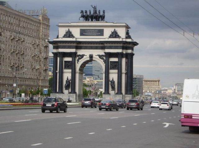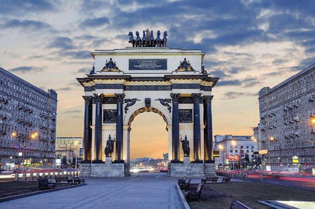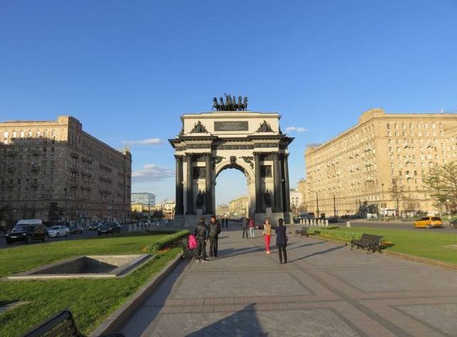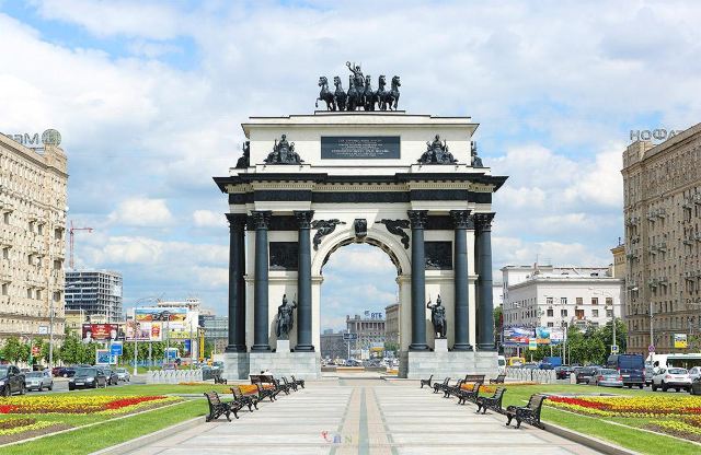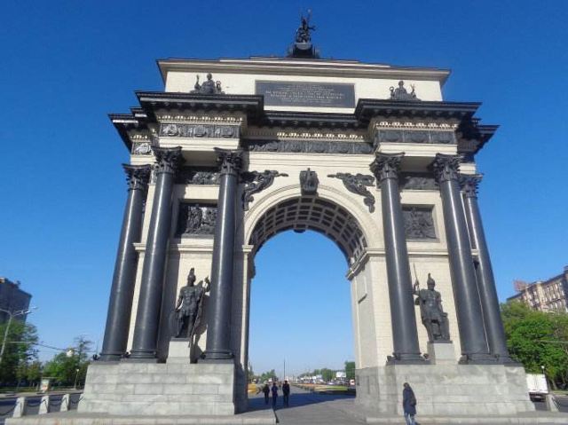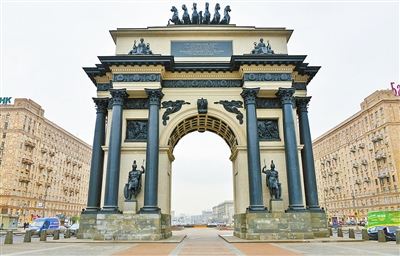 胜利公园的广场向东,就能看见莫斯科凯旋门。